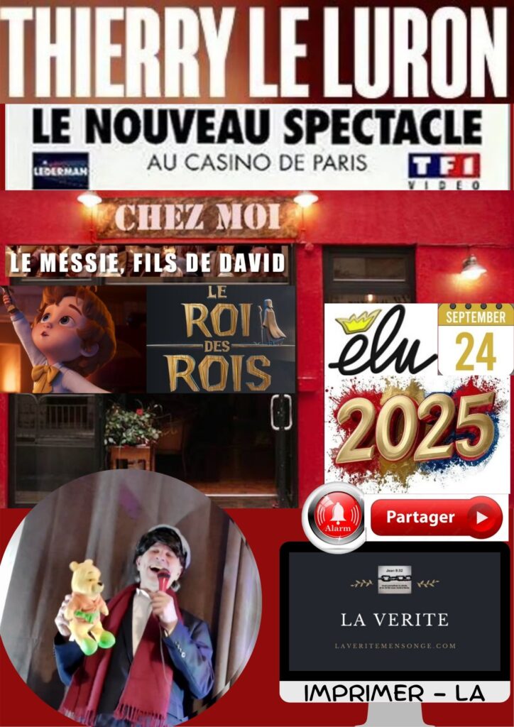 EN EFFET DEPUIS LE DEPART VOS COMEDIENS ONT ACCLAME MON AVENEMENT, UN SOLEIL, UNE NOUVELLE TERRE, LA LUNE, UN NOUVEAU JOUR, QUI BRILLERA POUR ECLAIRER LES TENEBRES, CE TROISIEME TEMPLE SPIRITUEL, LA NOUVELLE JERUSALEM, POUR DEVOILER LE FAUX TEMPLE JUIF : L’ANTICHRIST L’ELU EMMANUEL MACRON, L’ESCLAVE DU GRAND ARCHITECTE SATAN, QUI EST CETTE MATRICE 666, CE LABORATOIRE IA APPELLE NEOM OU VOUS ETES PLONGES.
