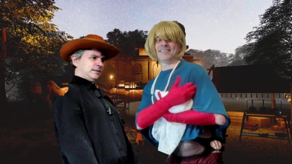 COLUCHE ET THIERRY LE LURON EN 1985, VOUS EVEILLEZ EUX AUSSI, A TRAVERS CETTE PARODIE, POUR VOUS INFORMER, QU’UNE UNION ENTRE DEUX HOMMES, DANS LE FUTUR, ETAIT EN PREPARATION DANS LE CIEL, UN MARIAGE D’AMOUR CELESTE.